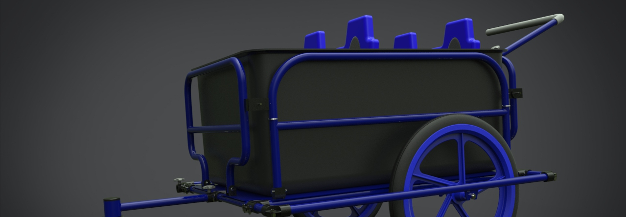 This is one funky bike trailer. Notice the insert with seating for little ones. The whole thing is designed superbly. The box containing the seats can be removed for towing non-human cargo, and the entire thing collapses down flat for storage. Personally, though, my favorite part is the blue accents. Would sure look slick with a matching black and blue bike!