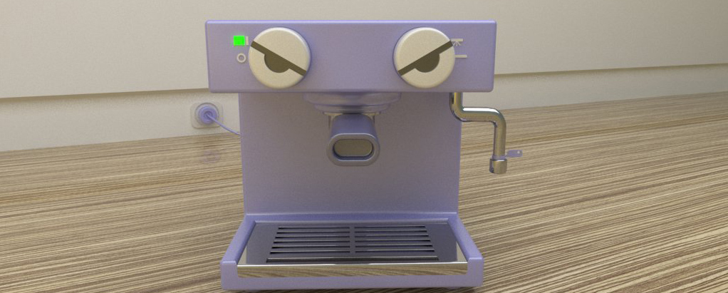 Have we mentioned that CAD designers are pretty creative? Don’t you just want to adopt this espresso machine? Don’t you just want to turn that implied frown upside down? The 3D modeling and the rendering are all very good, but the first thing that strikes you about this design is the inventiveness of the design itself!