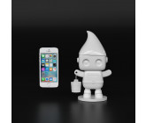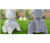 I do like the creative use of the backpack/compartment for housing the electronics. I'm just not going for the head/face at this point. Consider some gnome elements that could be changed to make this robot look more like a gnome. Consider things like boots, belt, hat, etc...
