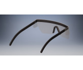 Design a product concept for a warning system which clips to a users safety glasses to provide audible and visual warnings of nearby workplace hazards. Module should clip-on existing modern safety glasses. There should be a warning light in the user’s peripheral vision and speaker aimed down towards users ear. (Optional) forward facing flashlight. Include 1 push-button for “snoozing” warnings, and another push-button for the flashlight.