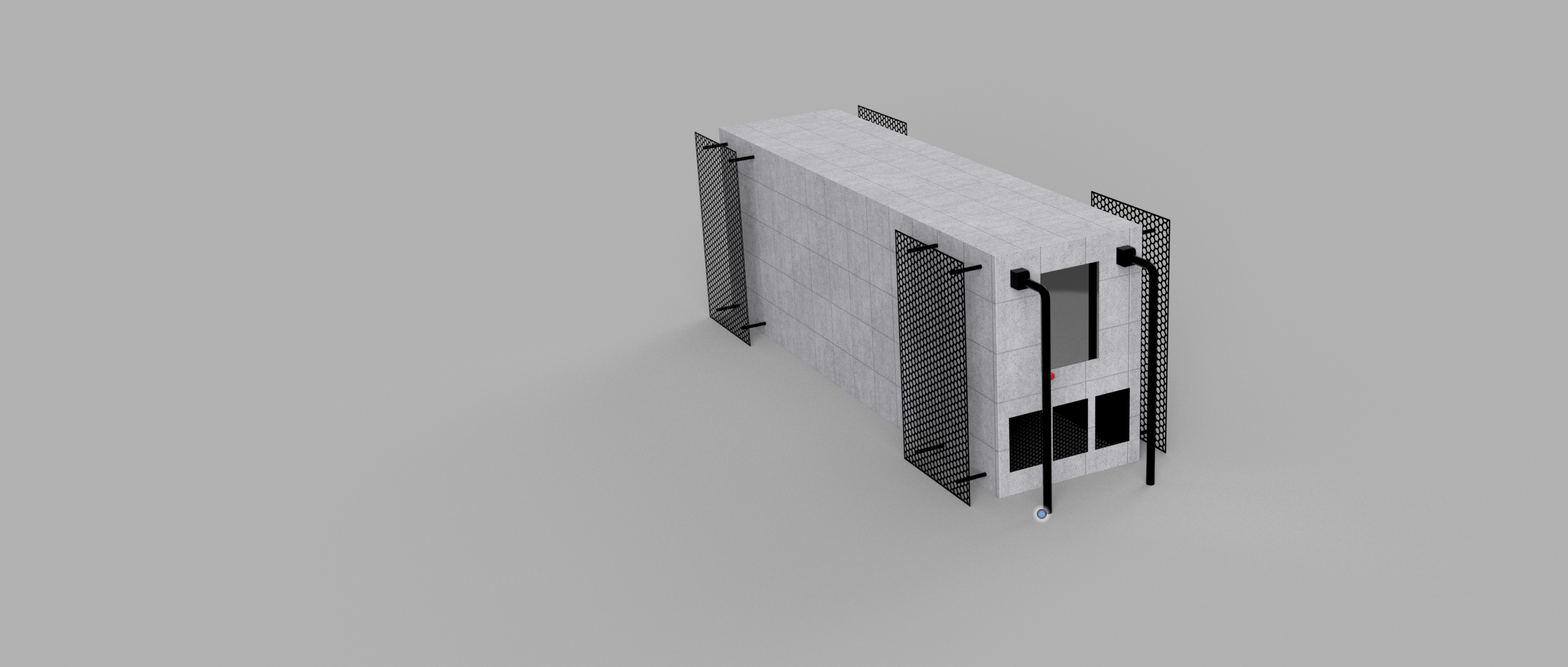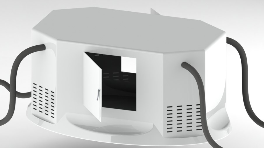 There needs to be a rack on the roof that will secure the robot (shown inside a pipe) shown in the attached; this will be craned off when needed.