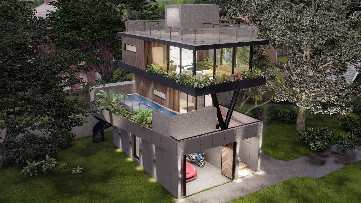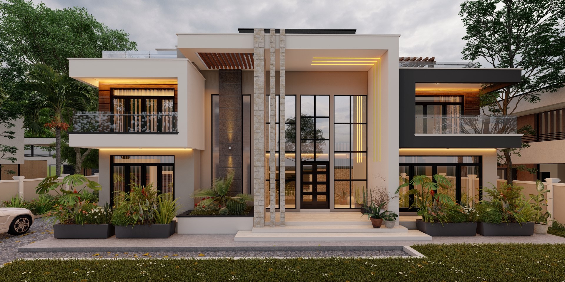 We are currently in the process of finalizing the design for a modern villa in the DACH (Germany/Austria/Switzerland) region. We are super happy with the front of the villa. We love the design there.