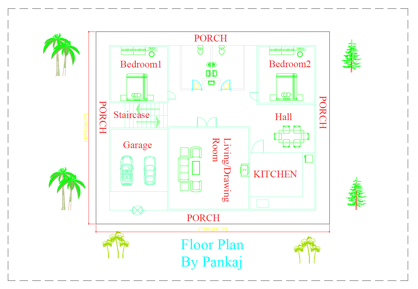 We have also planned a small water area in front of the left part of the house so that there is a mini bridge leading to the entrance door (similar to the design of another villa we included in the presentation).