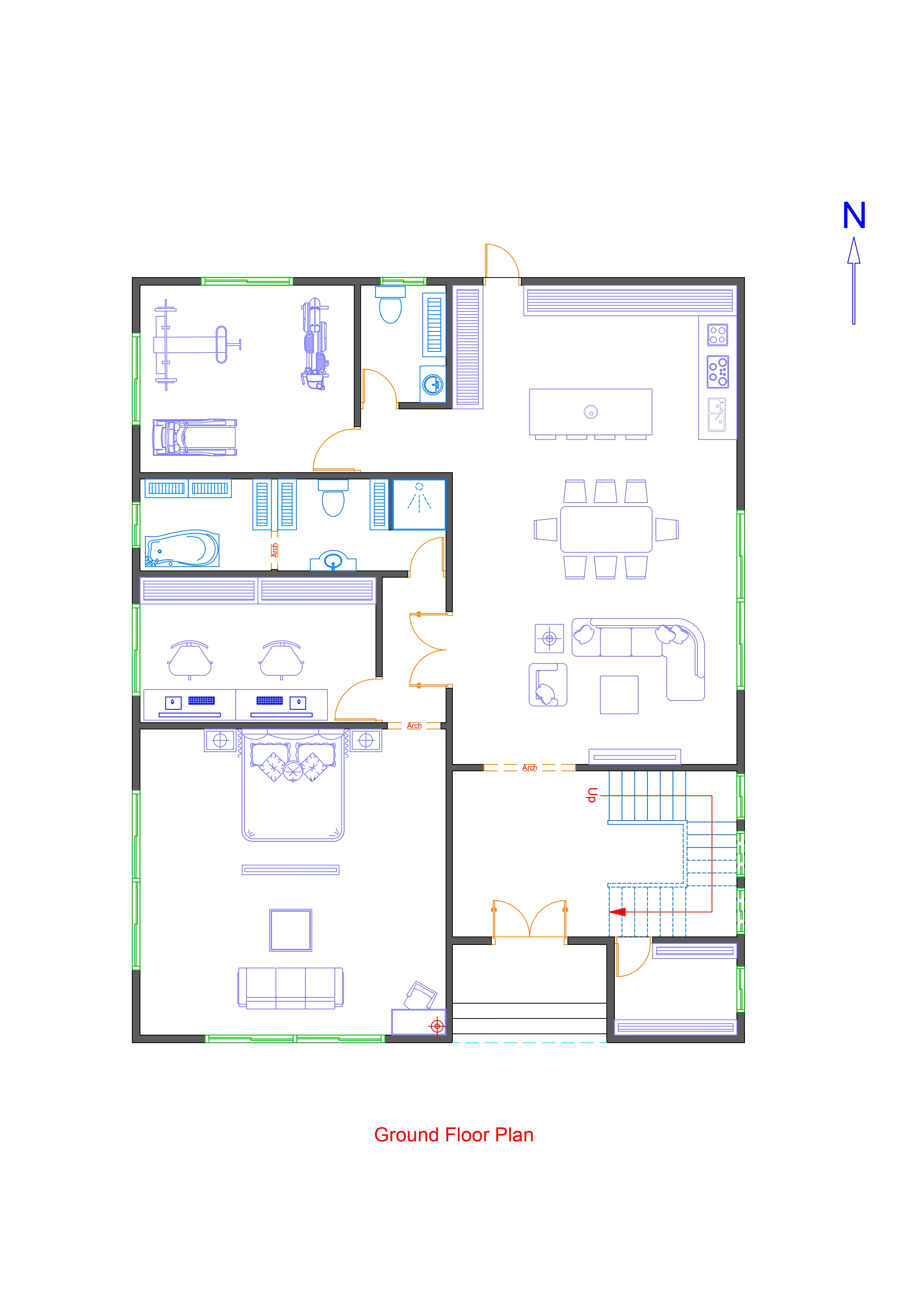 In addition some idea with regards to the construction leading to the basement would be welcome. How would that look best in terms of stairs, green area etc.