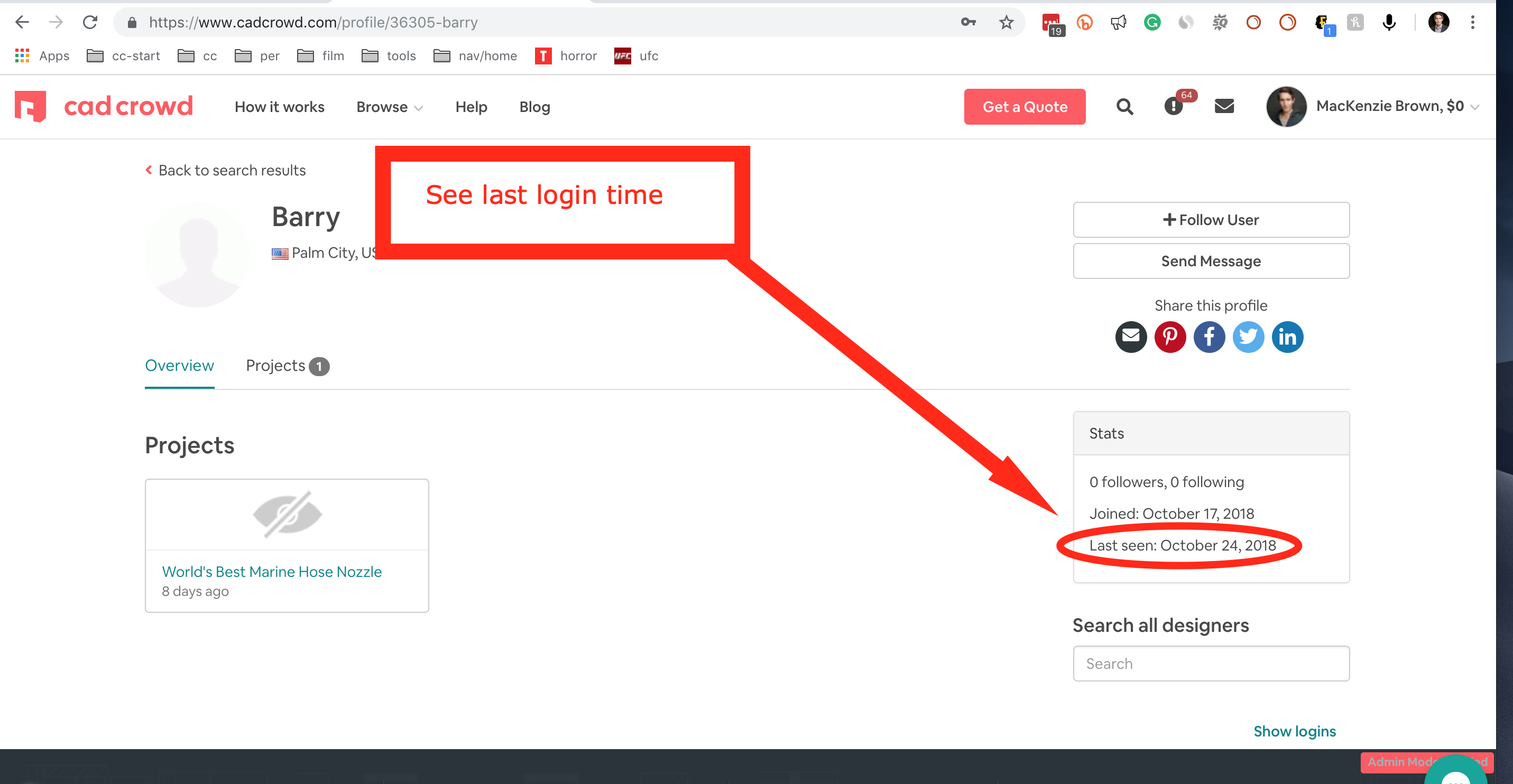 - Last login: Check the client’s last login time to ensure the contest is active and the client reviews design entries daily. The last login is important since no recent logins may indicate an abandoned contest.
